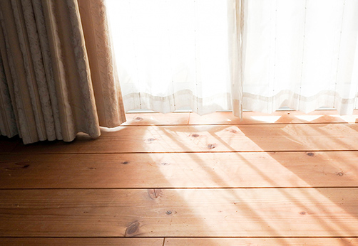まずはカーテンを設置するお部屋への日光の入り方、照明の当たり方などを確認します。